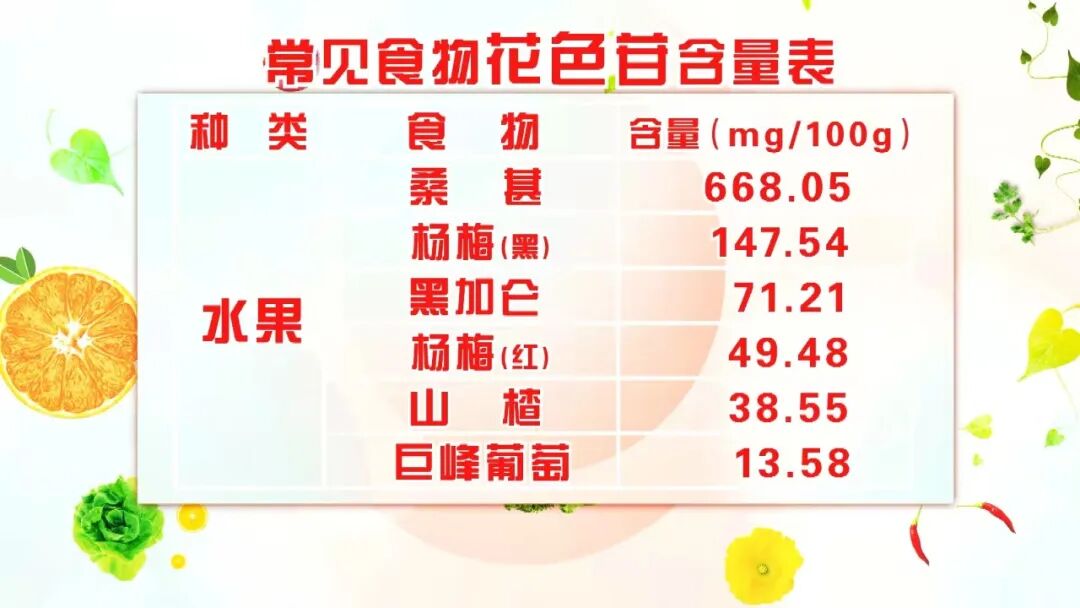 桑葚富含花色苷,有含量為668.05mg/100g,是水果中花色苷含量較高的食材。比葡萄強50倍!