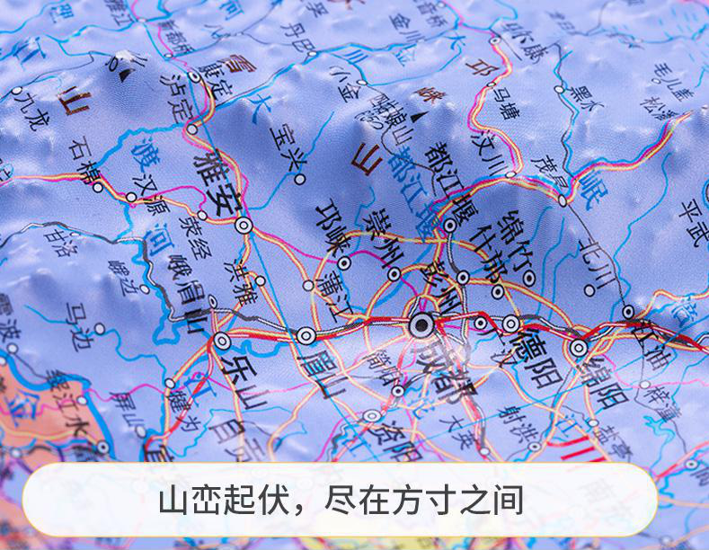 我們和地圖出版社的老師反覆挑選,從上百個品種中,挑選出四種3D凹凸地形地圖。為什麼要精心挑選呢?地圖琳琅滿目,質量參差不齊,我們當然要挑最好的。