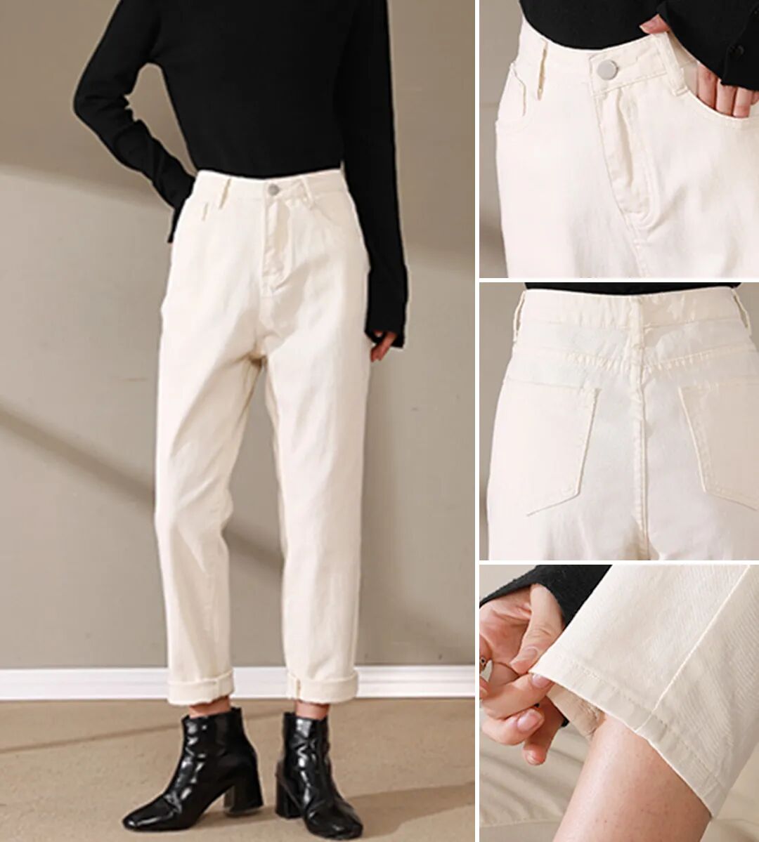 上寬下窄的直筒哈倫版型,瞬間隱藏小肚腩,腰線拔高,瞬間又高又瘦了!