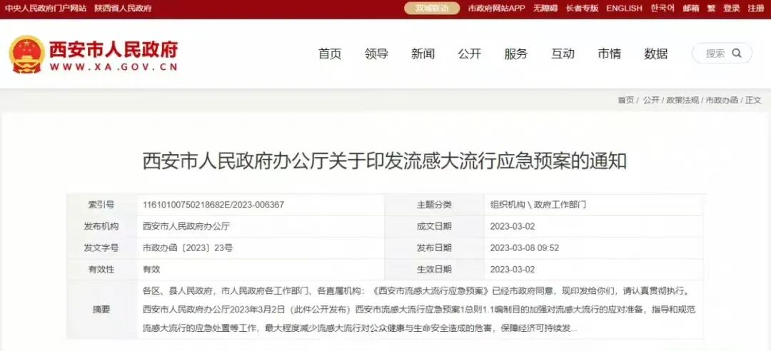 西安市剛發佈流感緊急預案,必要時停工、停課、停業。
