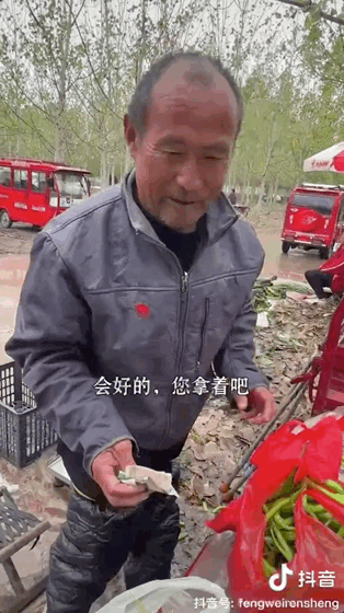 可大叔執意收取他應得的10塊錢,直到博主說給小孩買點吃的,然後一把將錢塞到大叔手中,說道: