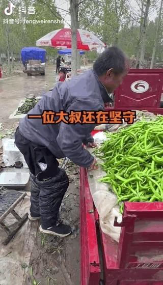 辣椒只賣1塊5毛錢一斤,在很多人看來似乎並不值得在冷風中冒雨堅守。
