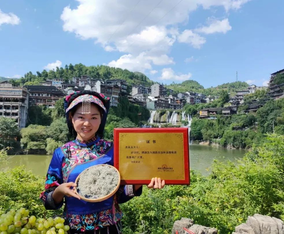 喜妹她是莓茶古法炮製傳承人,因而成為了遠近聞名的“莓茶形象推廣大使”!