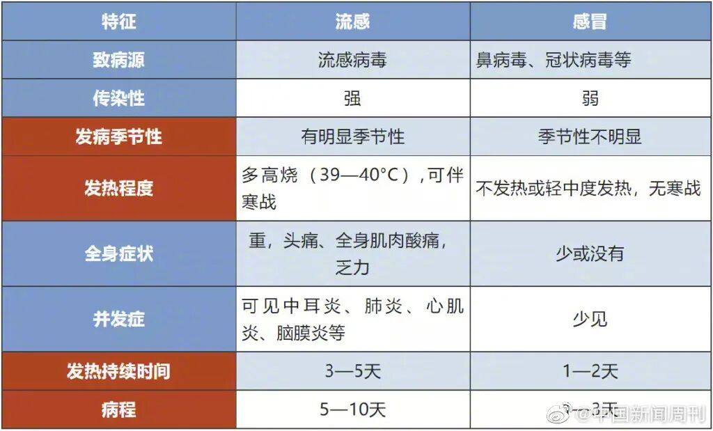流感會比感冒更重,發燒週期長,也會出現肌肉痠痛、乏力等全身症狀。且傳染性更強,季節性也更明顯,還可能引起一定的併發症現象…
