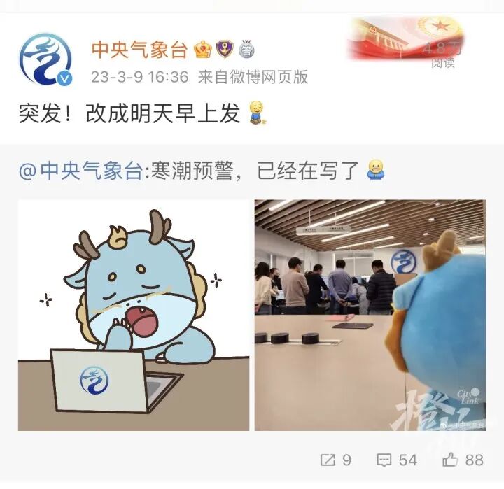 昨天下午,中央氣象臺發佈消息:“寒潮預警,已經在寫了。”然而,僅僅20分鐘後,中央氣象臺突然改口了:“突發!改成明天早上發”!