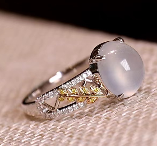 高白冰蛋面飽滿,種老質細,剛性與熒光在自然光下呈現由內而外盈透光亮的感覺。