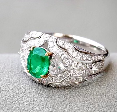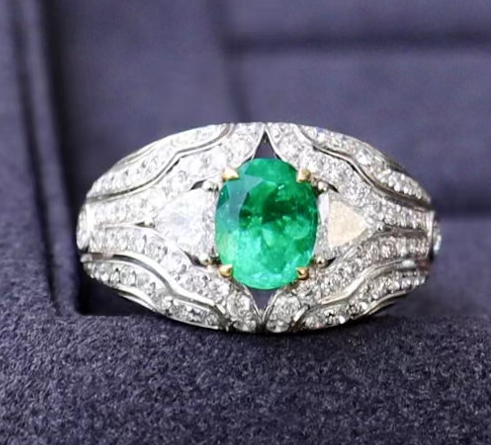 哥倫比亞橢圓形切面祖母綠晶瑩通透,豔綠色嬌嫩明亮,切面閃耀,微油,克拉重1ct。