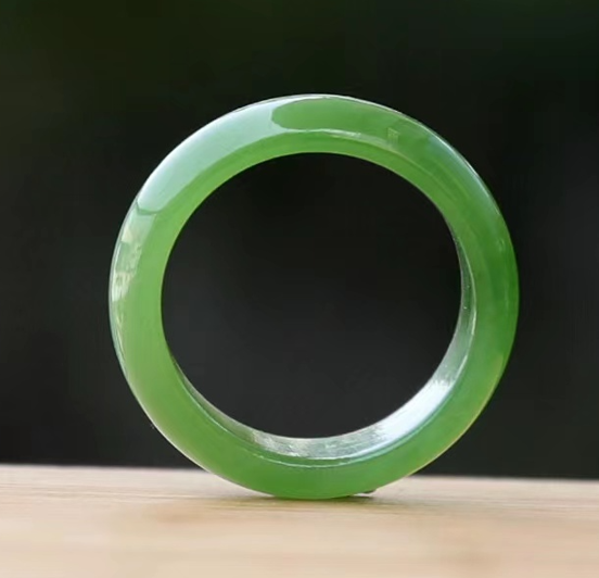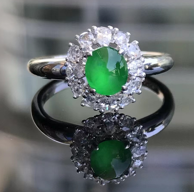 碧玉冰底料,水水嫩嫩的,非常乾淨漂亮。醉心一抹綠,佩戴在纖纖玉指間,氣質十足
