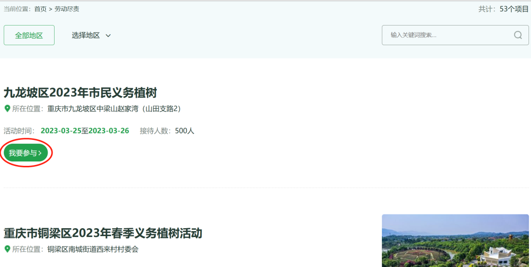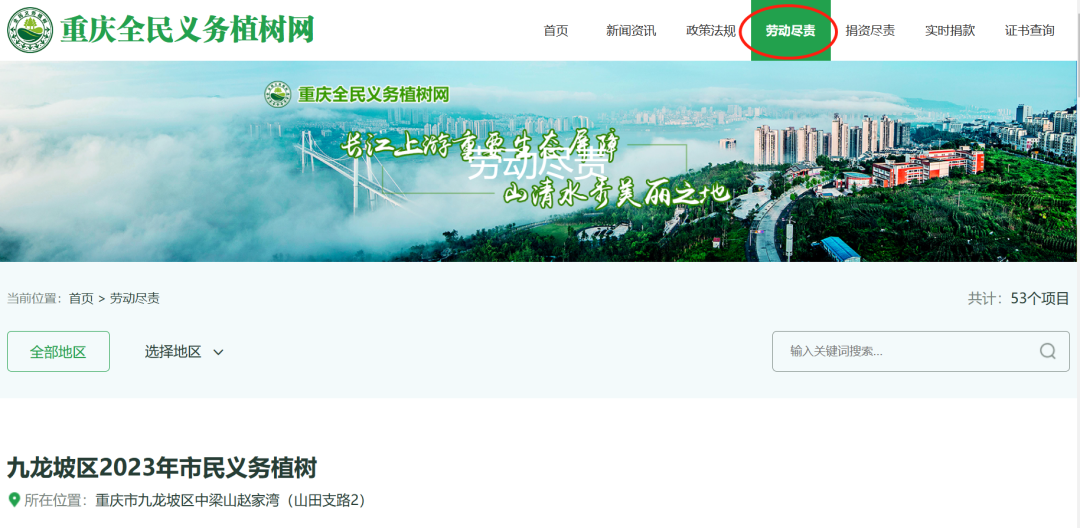 1.登錄“重慶全民義務植樹網站”,點擊“勞動盡責”。