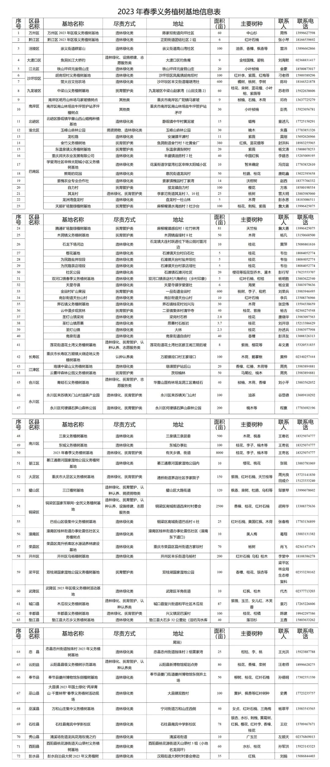 春回大地萬物生,植樹添綠正當時。植樹節將至重慶哪裡能種樹?如何報名參與植樹活動?9日,市林業局公佈了全市72個義務植樹基地名單,號召全市人民積極參加義務植樹。一起看報名方式與義務植樹基地名單。