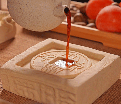 以銅錢浮雕內嵌茶承中,寓意吸水聚財,特別適合商務人士、老闆一人小酌。