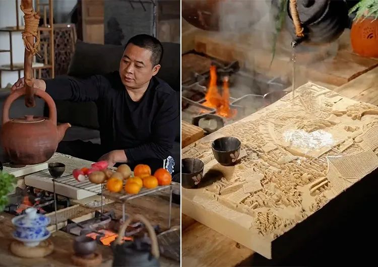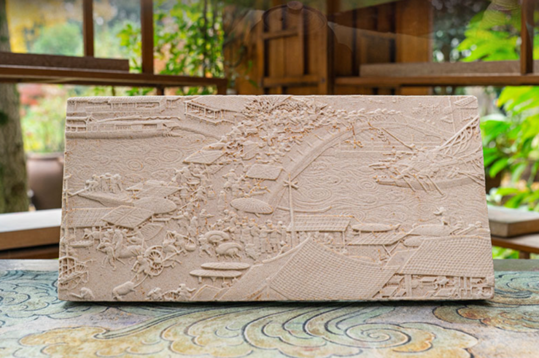 茶承浮雕選取《清明上河圖》名場面,在茶席上再現名畫風雅。