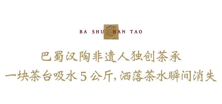 經過三十多年手藝沉澱,通過上萬次試驗,結合現代科學創新技術,終於賦活巴蜀漢陶,研發出這款“會呼吸”、“會講故事”的吸水漢陶茶承。