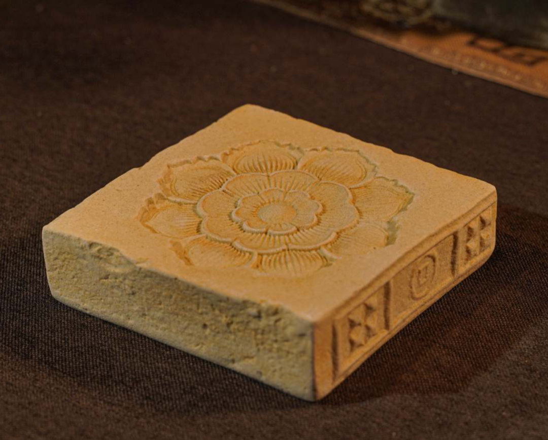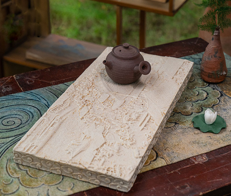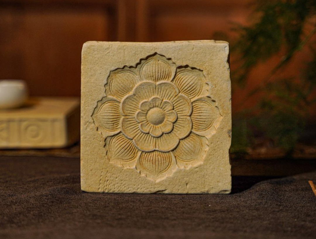 一個個巧雕於漢磚之上,因情趣而生輝,置於茶席之上古韻新生,意趣獨有。