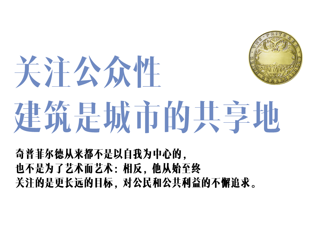 在奇普菲爾德看來,建築師在應對環境危機時,不應該只是簡單地建造幾棟具有節能環保功效的房子,而應當將建築單體放置於街道、行人和整個城市之中切實思考一種可持續的現代城市生態系統。