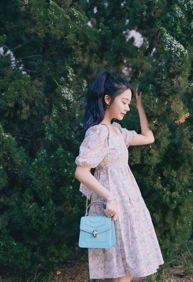 素雅的碎花裙子,是很多少女們的最佳選擇,簡簡單單,花樣不多,還盡顯活潑,將少女般的靈動展現的恰到好處,加上張紫寧的完美顏值,更是好看,小碎花的裙子似乎有著一種魔力,將顏色搭配得十分漂亮,活潑又可愛,再加上一個天藍色的包包,更是純粹無比。