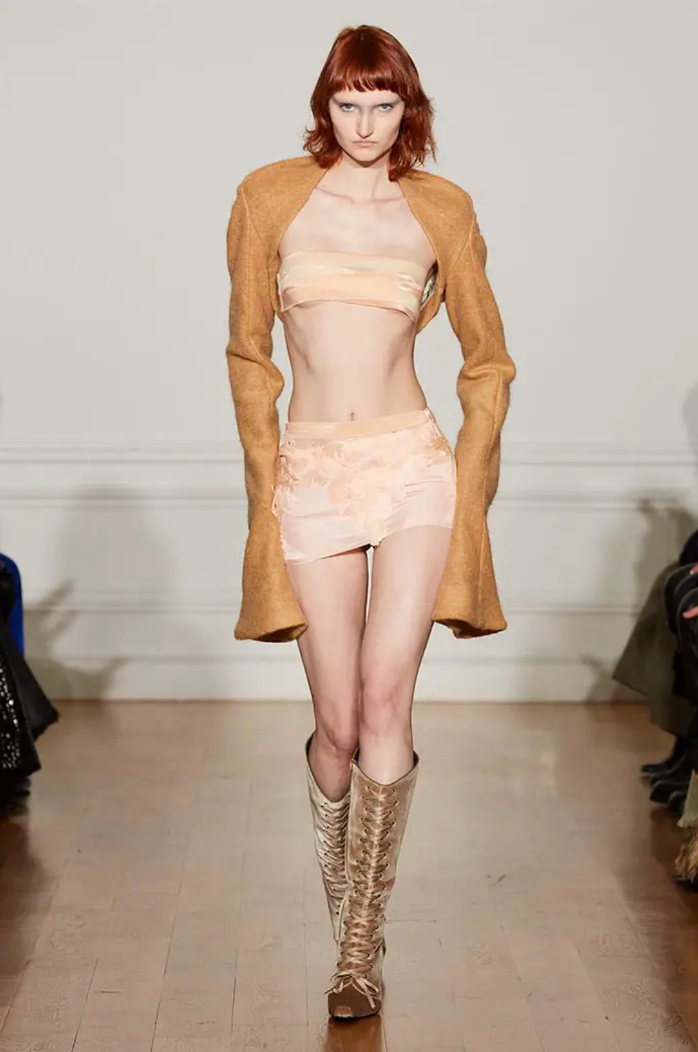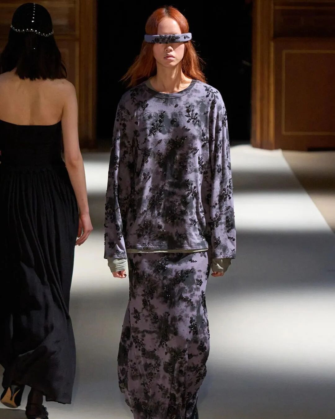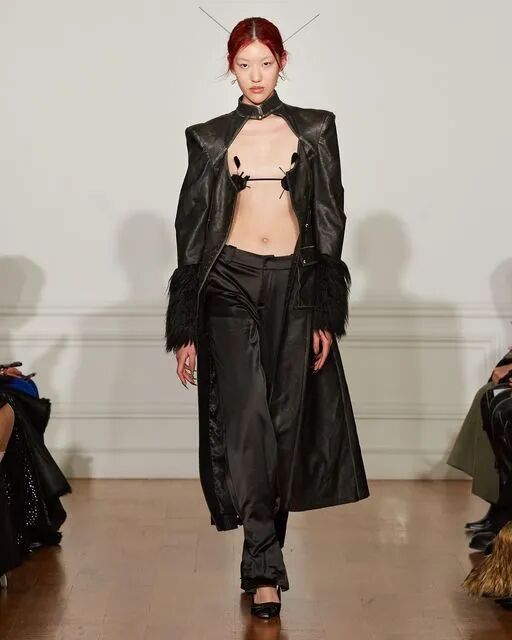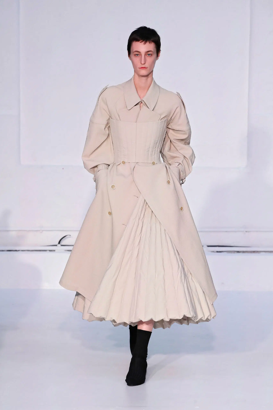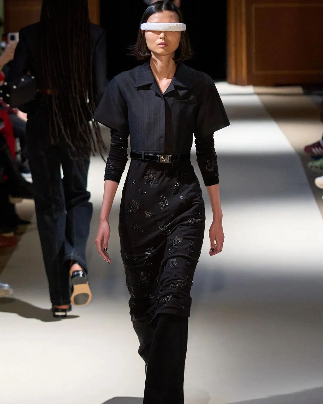 在CALVINLUO此次巴黎時裝週發佈的2023秋冬系列中,設計師羅禹城嘗試通過面料、工藝與廓形的組合,將柔美與鏗鏘合二為一,隱喻不被定義的女性氣質。