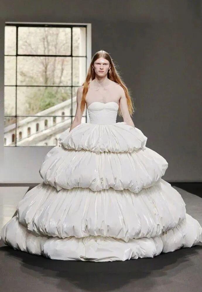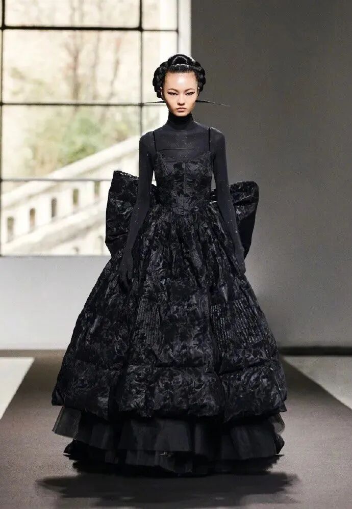 此次巴黎時裝週中發佈的CHENPENG 2023秋冬系列致敬了歐洲時裝經典,設計師以現代浪漫為創意出發點,融合了“高定禮服”的概念,讓刻板印象中“臃腫老土”的羽絨服化身成為華麗的羽絨禮服。