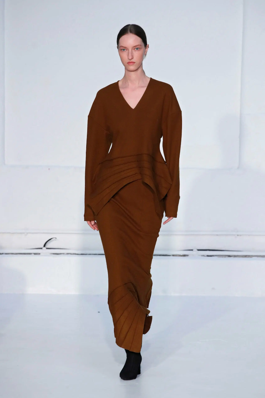 DAWEI已是倫敦時裝週的常客,從2019年2月就正式進入了官方日程。本次發佈的秋冬系列延續了設計師對輪廓、剪裁的實踐與思考。建築感的立體廓形及高品質的面料勾勒了穿著者摩登的優雅、獨立的個性,以及自由的精神。