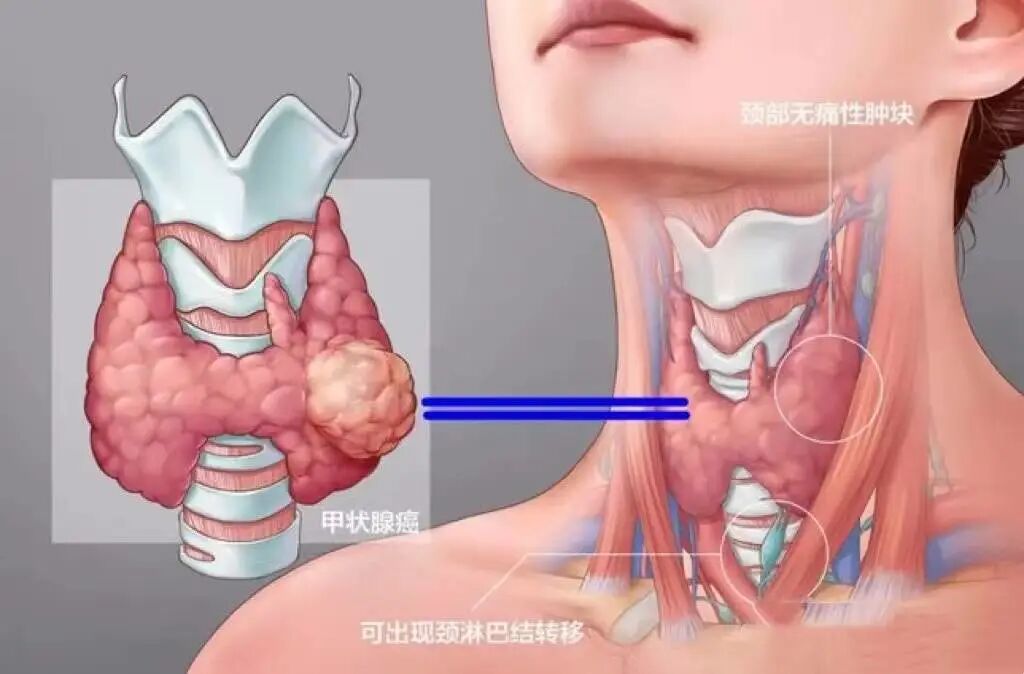 甲狀腺癌引起的淋巴轉移以頸部淋巴結轉移為主。且通常表現為質地較硬、頸部的固定腫塊為主。
