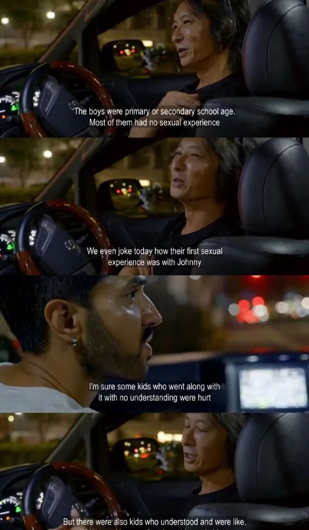 紀錄片中的被採訪者表示,“他(喜多川)沖洗著我的身體,就像我是個玩偶一樣”,“直到清晨他還撫摸著我,然後他用嘴巴侵犯了我”。