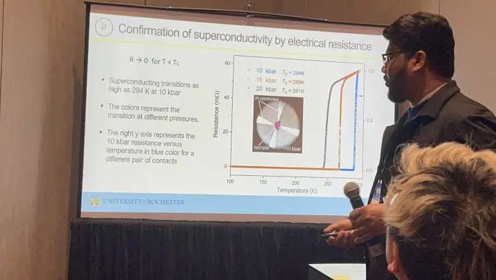 迪亞斯宣佈的這種新鍛造的超導體,在21℃和約1萬個標準大氣壓下,可零電阻地傳導電流。