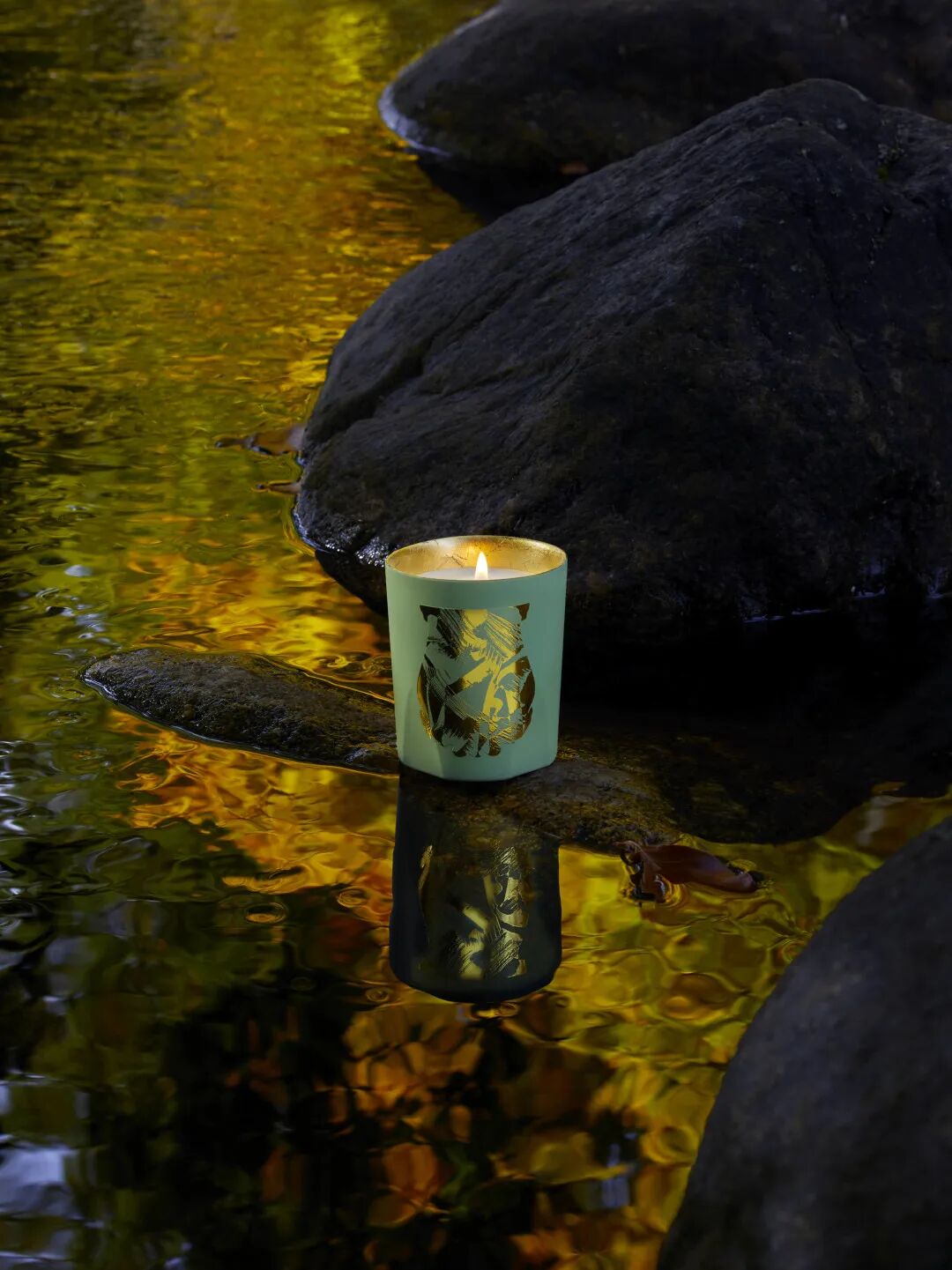 常言道“水為茶體而茶為水魂”。茶人一輩子的夢想就是要取得能完美詮釋頂級茶最珍貴的水源。從天際降下近乎無形的純粹到深達地底的水,由氣凝成滴再落化成河,從綠衣苔蘚的泥息到秋紅滿落的腐香,清透的水吸取其所到之處的天然成分、裝載其身,賦與土地生命。Trudon 臨水之旅系列的香氛蠟燭的創始理念來自於這股從天際落下、由大地滋養的水。為了呈現這樣的想法,聯名系列以水的三段旅程設計出水石清華、落英繽紛、膏腴之地三款蠟燭。
