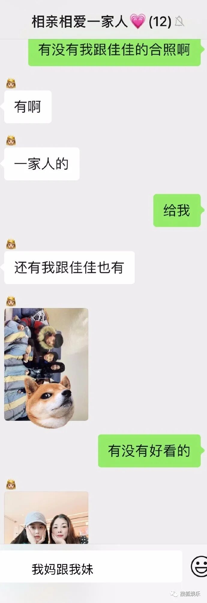 他還曬出了自己家庭群的聊天截圖,連表妹的正面照片都曬出來了。