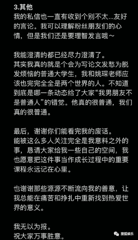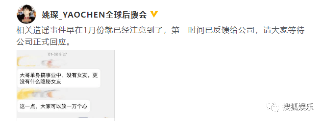 1、姚琛後援會闢謠戀情:請大家等待公司正式回應