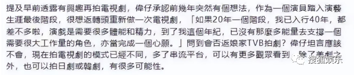 提及早前透露有興趣再拍電視劇,梁朝偉承認前幾年突然有個想法,作為一名演員踏入演藝生涯最後階段,很想轉頭重新做一次電視劇。