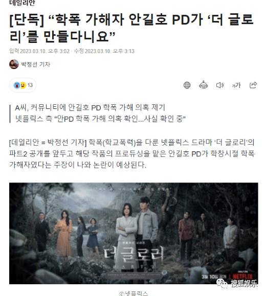 講述校園暴力的韓劇《黑暗榮耀2》今日播出,有網友爆料稱該劇的導演安吉鎬在學生時代是校園暴力加害者,引發爭議。