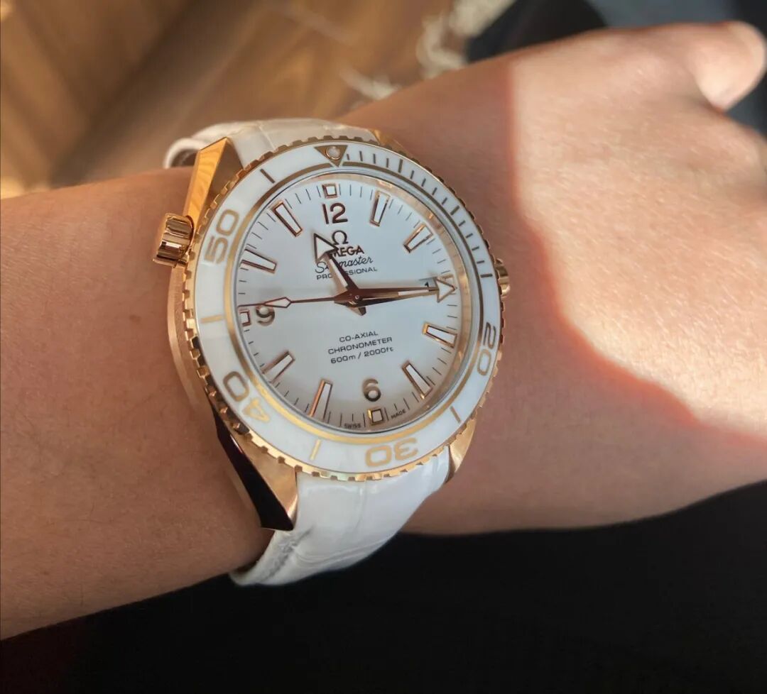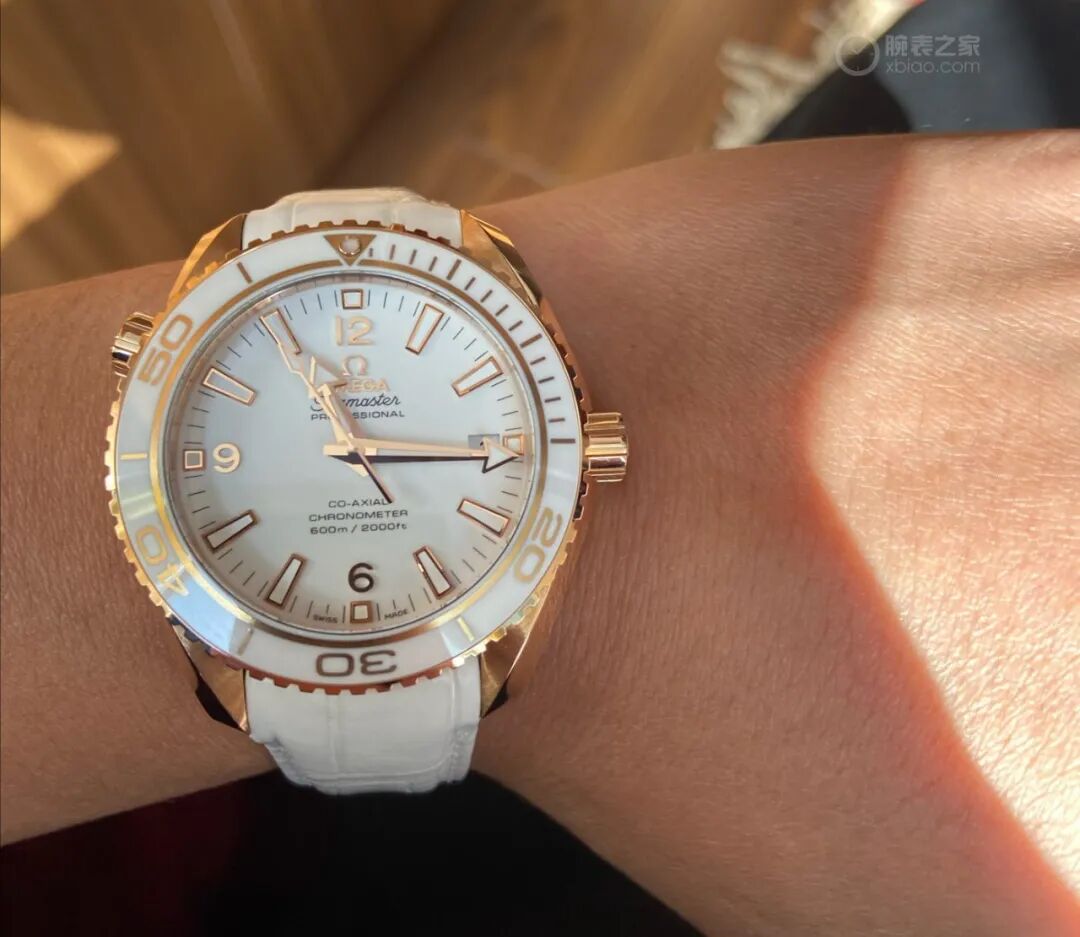 精彩內容:本來想買一枚歐米茄海馬系列海洋宇宙600米潛水錶黑盤款,後來無意中看到白盤款,發現實物真香啊,比照片好看太多了。白色和玫瑰金的配色,時尚又亮眼,十分好看。8800至臻天文臺機芯,走時精準,擁有55個小時的動力儲存,平時通勤佩戴完全夠用。