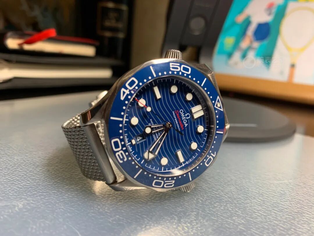 精彩內容:不知從何時起開始關注腕錶,或是人到中年之後總得有點興趣愛好,沒事的時候就在腕錶之家論壇看看錶。最近幾年也購入過幾枚心儀的腕錶,有的是一見傾心,有的是機緣巧合,有的是苦苦尋覓,有的則是愈發痴情。最近又想入手一枚腕錶,於是乎選擇了歐米茄海馬300米潛水錶藍盤膠帶款。陶瓷錶盤和陶瓷圈都是藍色,非常精緻,這抹藍色沁人心脾。佩戴很舒服,也很結實耐用!每次看到它,喜愛之情會更深一份,越看越愛。
