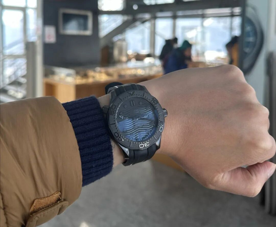 精彩內容:今年準備和老婆蜜月旅行, 途中意外邂逅了歐米茄海馬300米潛水錶墨黑款!一上手即種草,立馬拿下,作為蜜月之行的紀念。佩戴一段時間後,每天還是不斷想抬手欣賞它的美。有別於之前的版本,這次連表耳、錶冠、表扣都是黑色陶瓷,徹底“黑化”,佩戴上手路人回頭率極高。全黑的錶盤很有層次,讀取時間也很容易。我只能說照片呈現不出這枚實表全部的美,在不同角度下黑陶瓷閃閃發亮也是一種低調奢華,走時精準,8806機芯真心給個贊。
