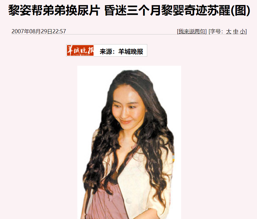 可在2007年,黎嬰發生車禍,黎姿一邊拍臺慶大戲《珠光寶氣》,一邊跑醫院照顧弟弟。