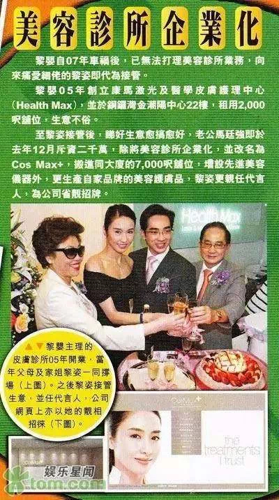 不得不說,馬廷強對黎姿的事業幫助很大,將美容診所企業化,打下基礎。