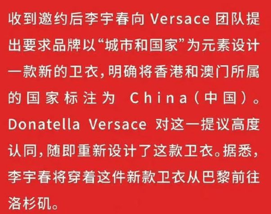 雖然姑婆對李宇春無感,但實際情況是李宇春要求品牌方那邊設計一款新的衛衣,明確中國香港與中國澳門的位置,才能同意合作和看秀。
