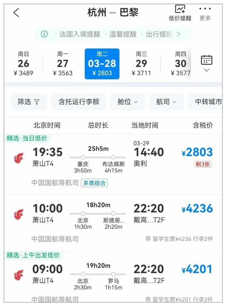 攜程數據顯示,部分國家的搜索量環比前一日增長超300%。2023年1月8日至3月8日,內地遊客赴法國的機票預訂量同比增長超6倍,酒店預訂增長16倍。內地遊客赴越南的機票預訂量同比增長超23倍,酒店預訂量同比增長超22倍。