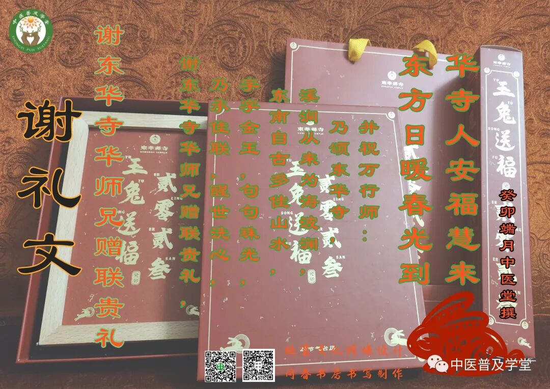 ‘上下求索’就是跟師前必須做的,和人交流也是,像我要了解東華寺的萬行師父,我們去年連續收到幾次東華寺寄來的禮物,非常的感動。舜華師友也給我們寄了不少法寶,老師為東華寺寫了首聯句: