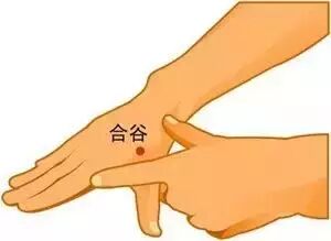 一隻手的拇指第一個關節橫紋正對另一手的虎口邊,拇指屈曲按下,指尖所指處就是合谷穴。