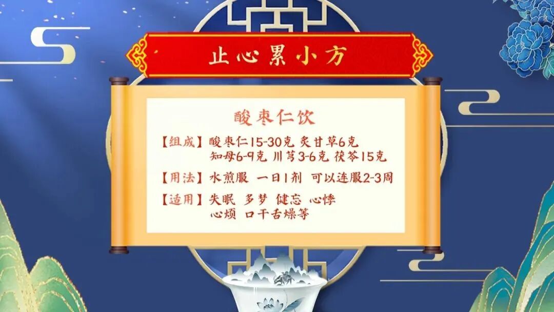 節目上有一位60多歲的阿姨失眠大半年,換了一種又一種鎮靜安眠藥還是睡不著,心火旺盛、心煩氣躁的症狀特別明顯。