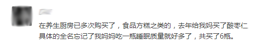 “在養生廚房多次購買了,媽媽吃了一瓶睡眠質量好多了,買了6瓶”