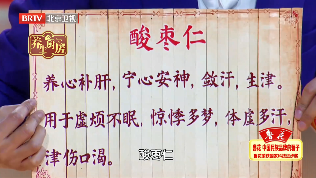專家講到,酸棗仁安心神、舒眠、除心煩、降肝火、防盜汗。