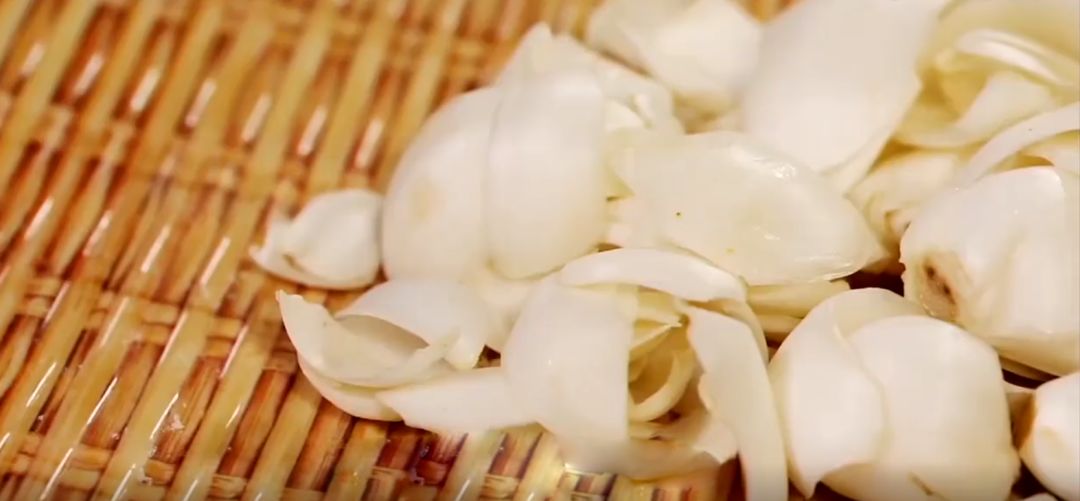 嶽西的茯苓苓潔白如玉,經過加工曬乾後的茯苓片,散發出幽幽清香。