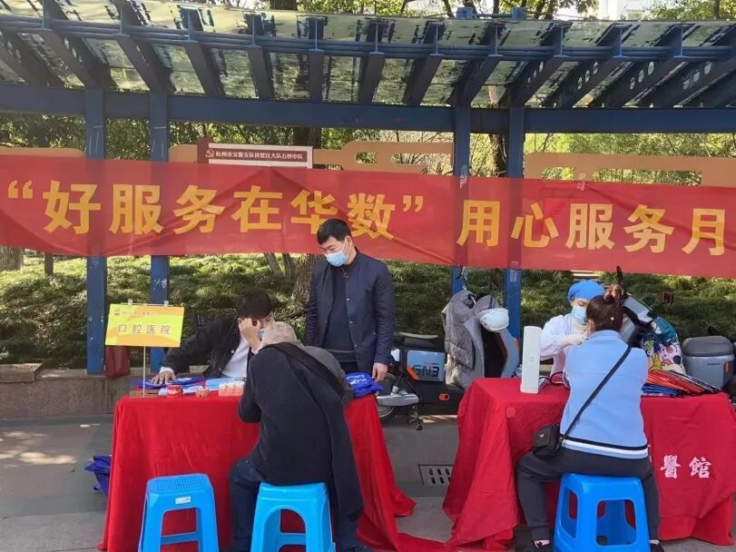 在杭州東新園社區,96345便民服務中心帶領各位專家為社區市民提供口腔檢查、量血壓、測血糖、骨密度檢查、中醫問診、磨刀、修傘、理髮等便民服務;