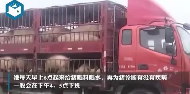 她稱,自己一般早上6點多鐘起來給豬喂料就行,現在設備也比較自動化,喂完了料就喂水,然後再觀察下豬群,看下有沒有不吃料或者生病的現象,然後再去診斷一下,診斷有問題的就給他們打藥。有時候4、5點就下班了,有時候可能晚一點,一個月休息四天。如果豬群有生病的情況,可能晚上還要去看一看,觀察一下豬的情況。