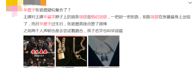2021年年中的時候,張碧晨被扒連撤了3檔節目,可華晨宇卻依然代言接到手軟,常駐綜藝一個不減。於是,就有人開始嘲女方想用孩子綁住男方的計劃失敗了,順勢曝了很多她私生活不好的瓜,最後以張碧晨方嚴正聲明收尾了。