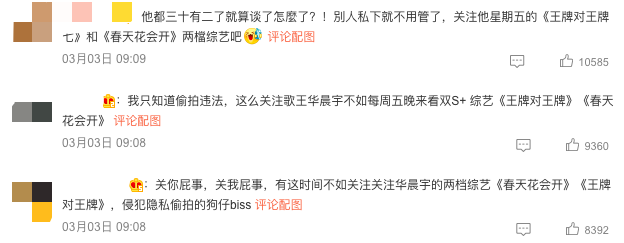 2022年華晨宇被拍和一個妹子手牽手回家,當時華晨宇的粉絲控評希望狗仔不要關注私生活,多關注他的作品,而張碧晨的粉絲卻覺得妹子屬於想不開,長那麼好看去當後媽,當天就小撕了一輪。