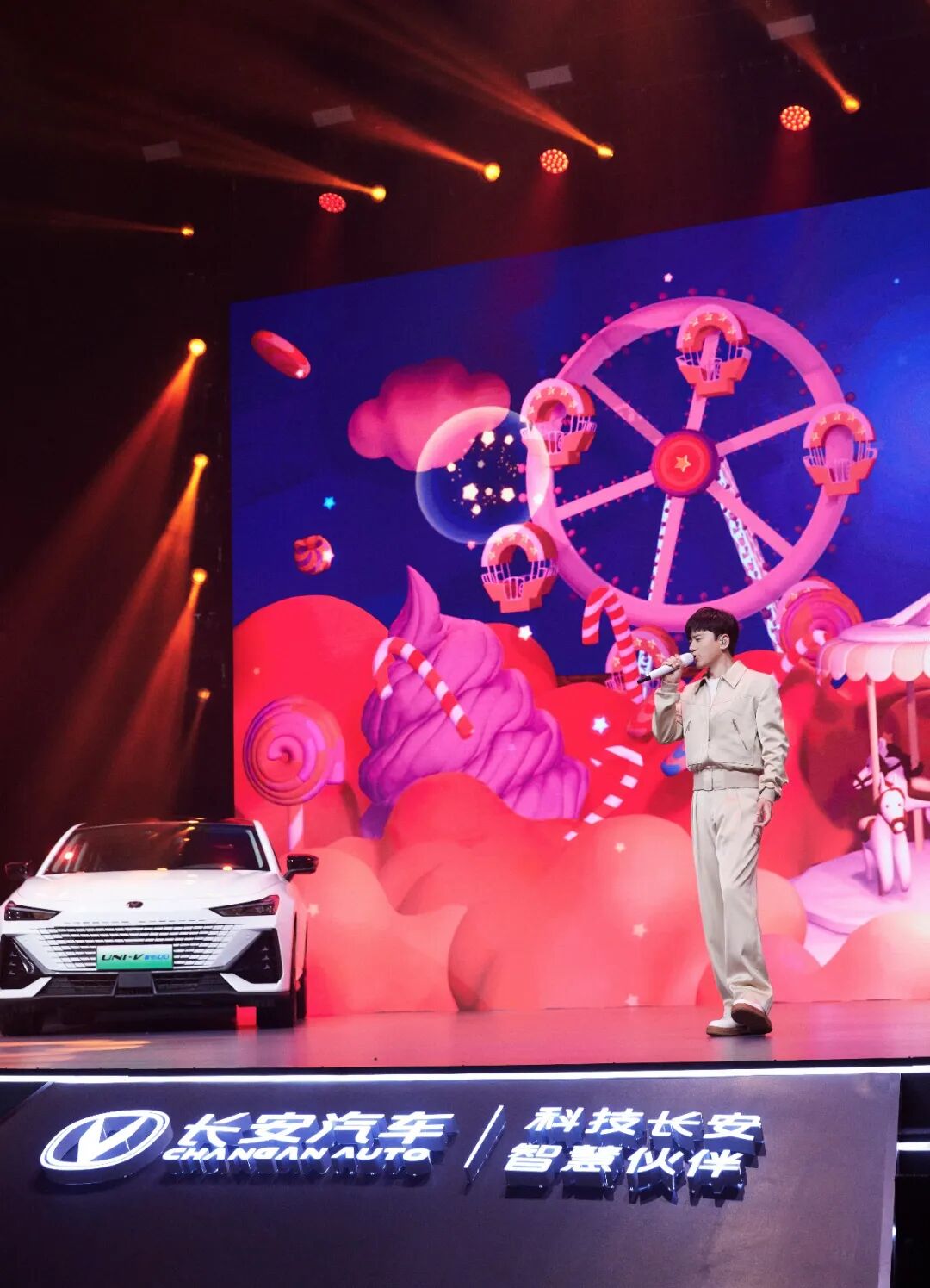 甜蜜過後,張傑的登臺格外霸氣,一首《少年中國說》點燃現場,《給女兒的一封信》又增添幾許溫情,隨後又帶來《白鴿天鵝》以及《仰望星空》兩首歌曲,動人的旋律和長安智電iDD主題交相輝映,描繪著對於未來的美好期待。