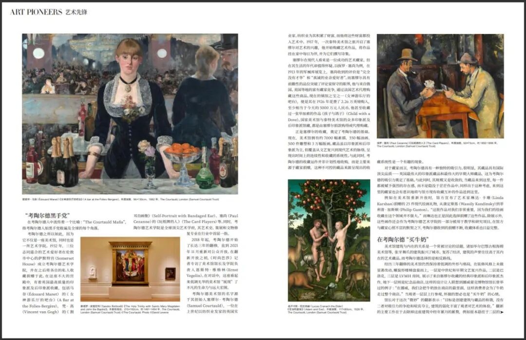 考陶爾德之所以如此,因為它不僅是一座美術館,同時也是一所藝術學院。1932年,三位志同道合的藝術愛好者在倫敦市中心的薩默特宮(Somerset House)成立考陶爾德藝術學院,並在之後將各自的私人收藏捐贈於此。在這座不大的宮殿中,有著英國最高質量的印象派及後印象派收藏,包括馬奈的《女神遊樂廳的吧檯》、梵·高的《割耳自畫像》、塞尚的《玩紙牌的人》等。同時,考陶爾德藝術學院是全球頂尖藝術學府,其藝術史、策展和文物修復專業在行業中首屈一指。